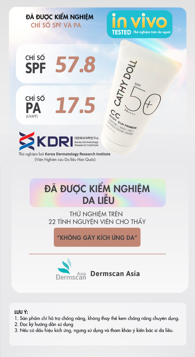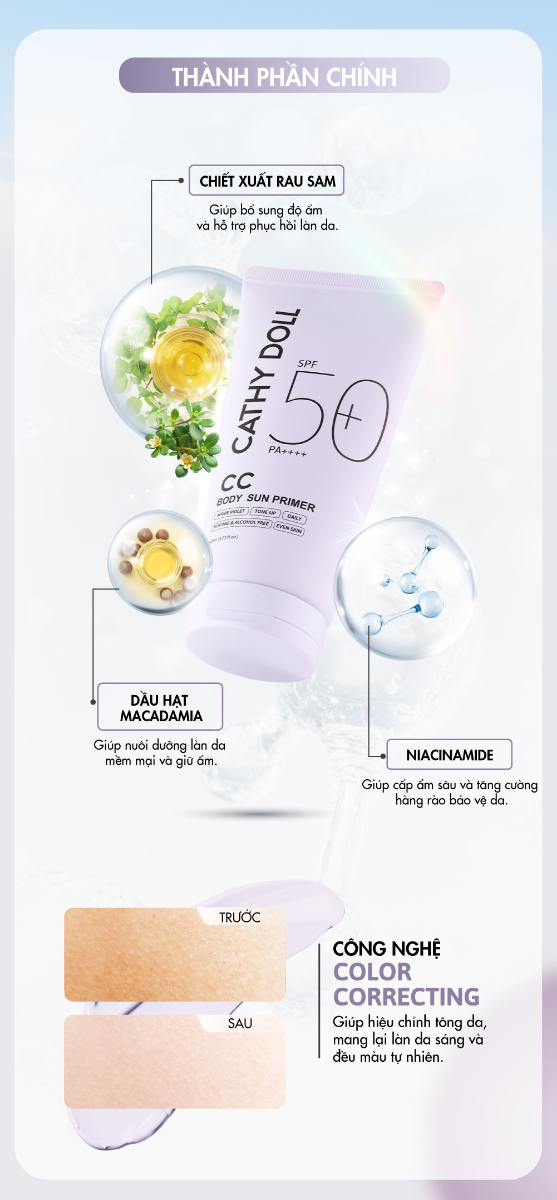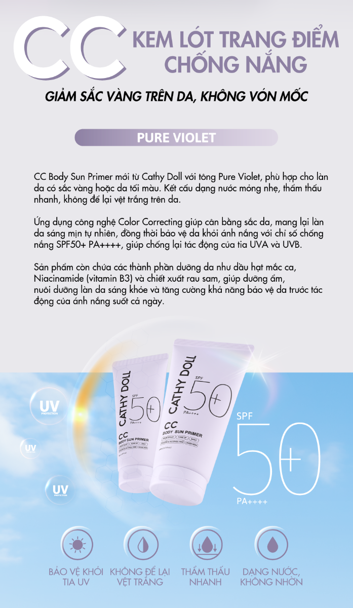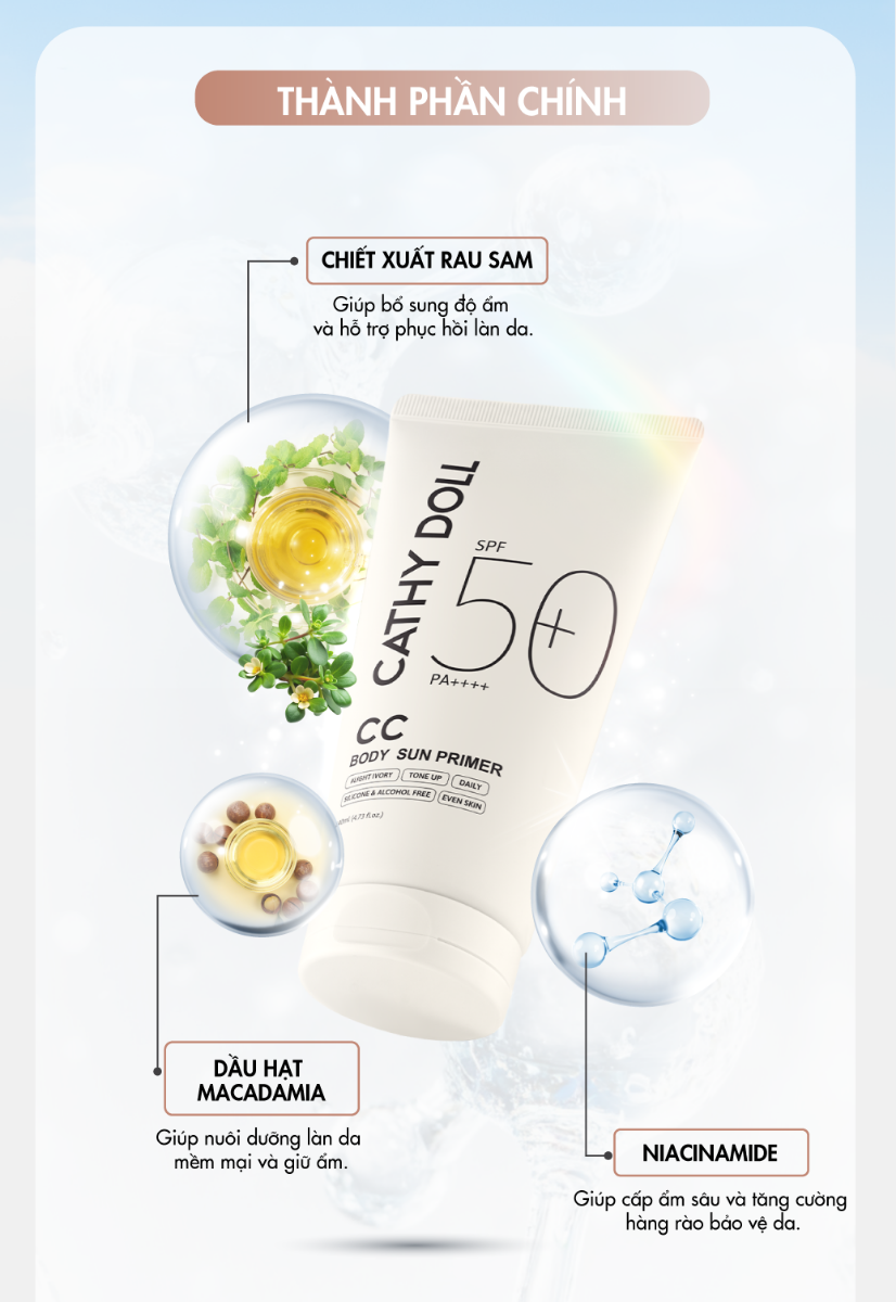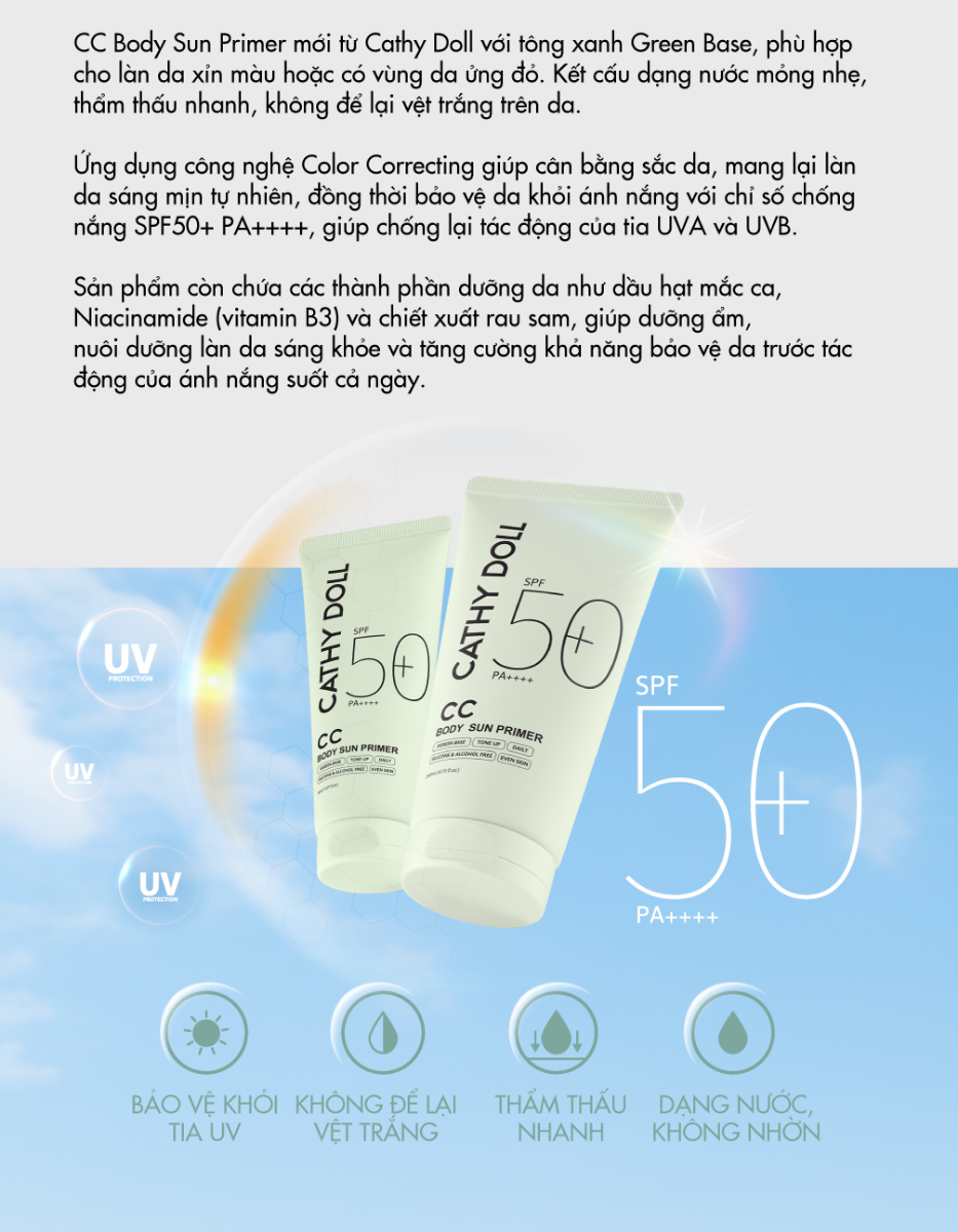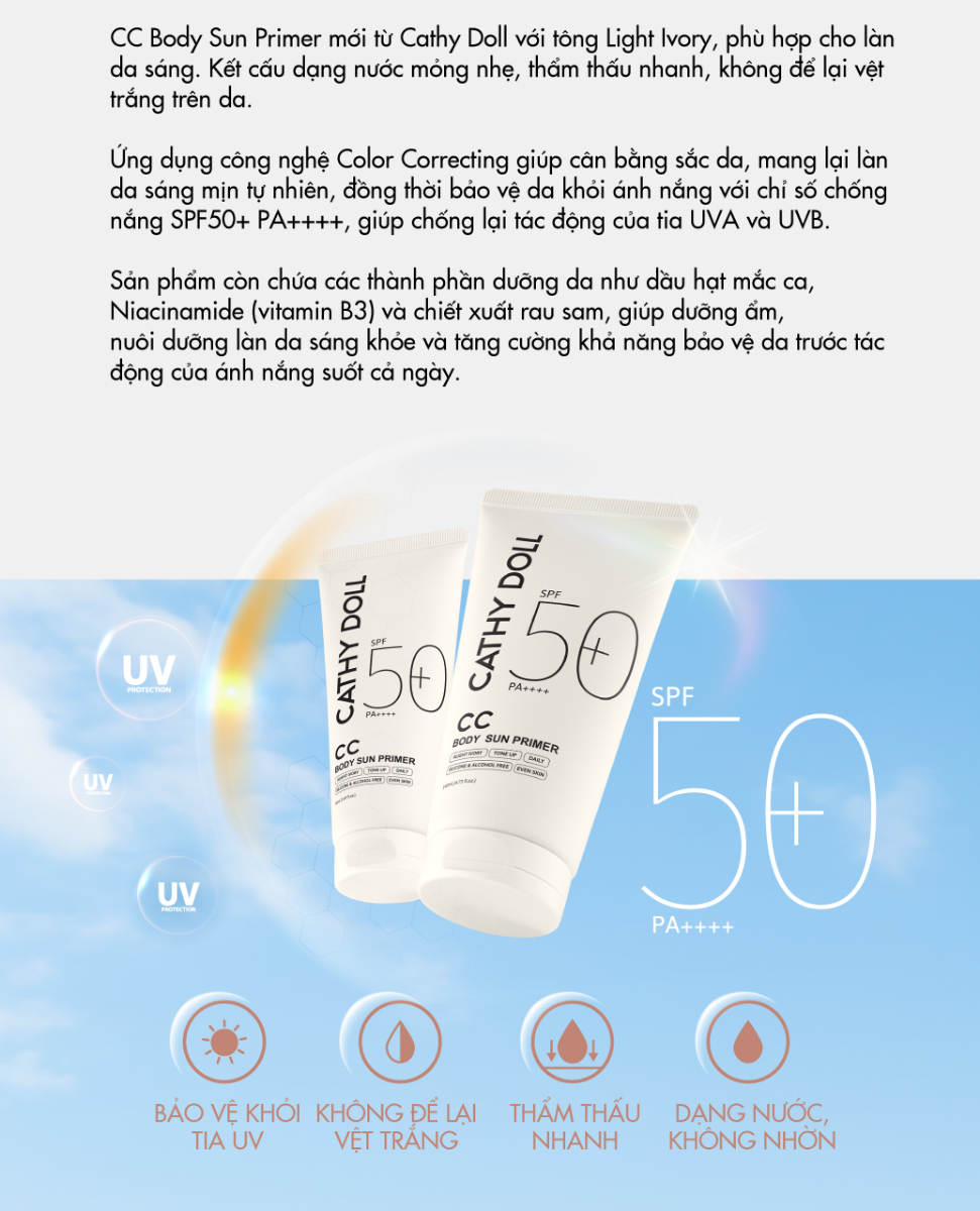 Kem Lót Trang Điểm Chống Nắng Cathy Doll Cc Body Sun Primer SPF50+ PA++++ 140ml