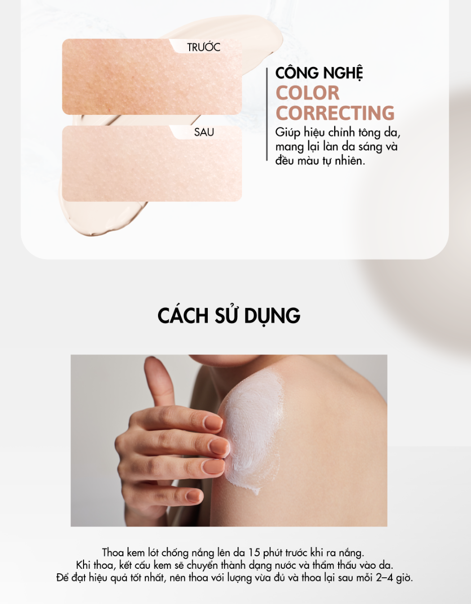 | Mô tả ngắn: | Kem lót trang điểm kết hợp chống nắng cho da cơ thể, giúp chống nắng bảo vệ da trước các tác hại của ánh nắng mặt trời, giúp trang điểm cho làn da trông sáng và đều màu, đồng thời giúp dưỡng ẩm da, mang lại làn da mịn màng |