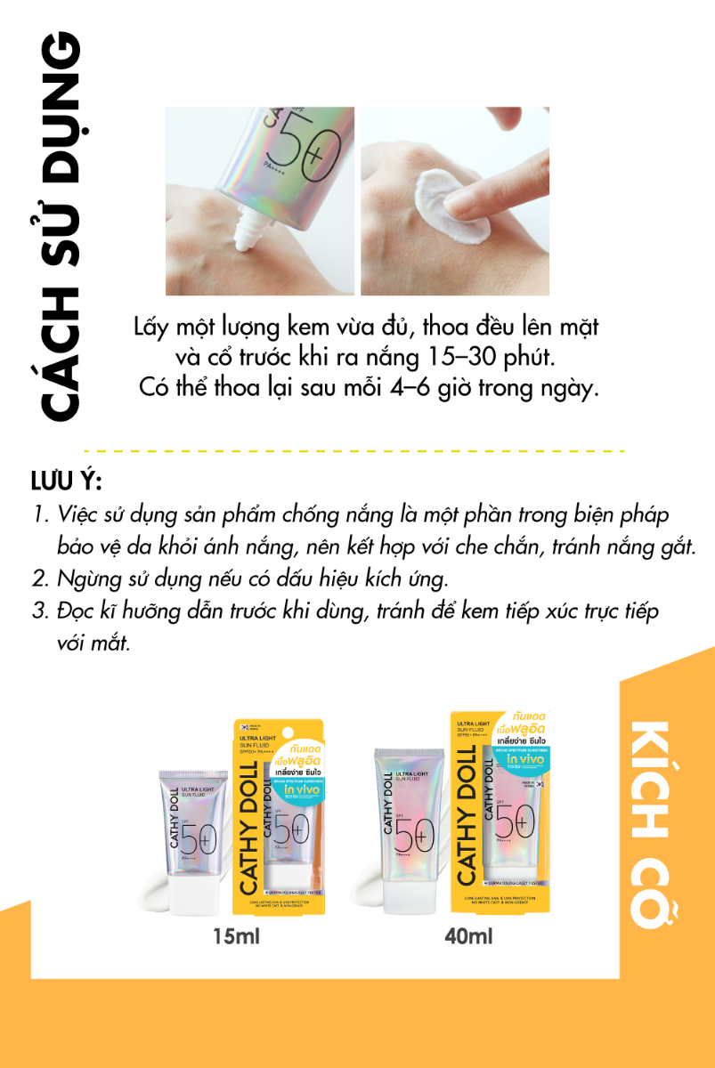 Sữa chống nắng dưỡng da Cathy Doll Ultra Light Sun Fluid SPF50+ PA++++ 40ml